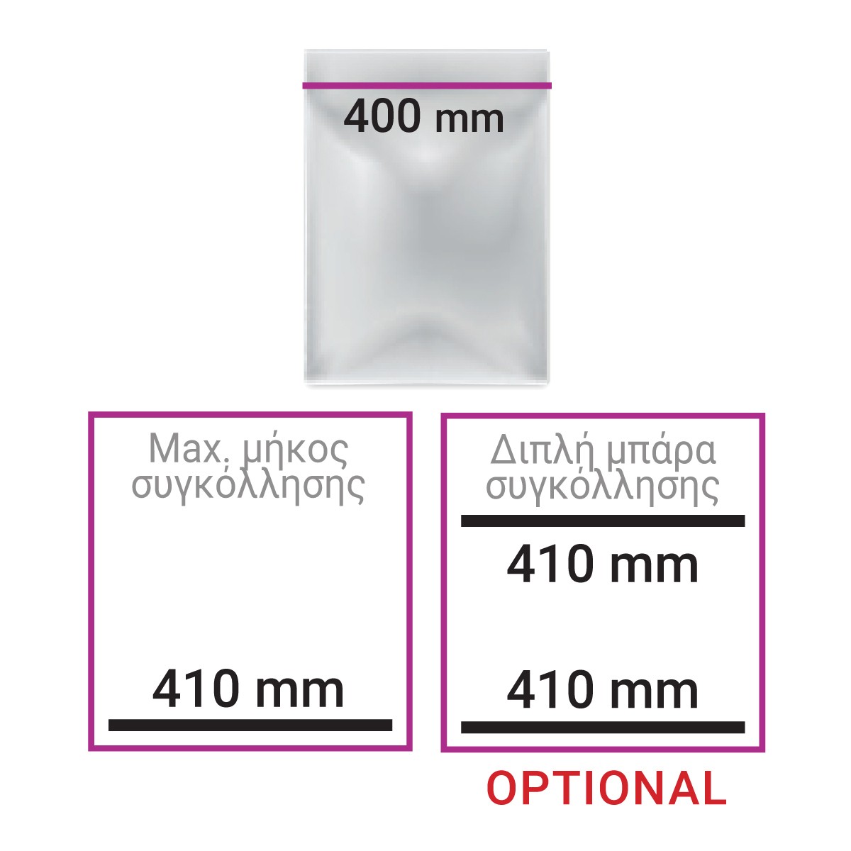 Μέγιστο μήκος σακούλας400 mm