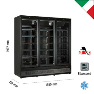 Βιτρίνα συντήρησης τριπλή με ανοιγόμενες πόρτες