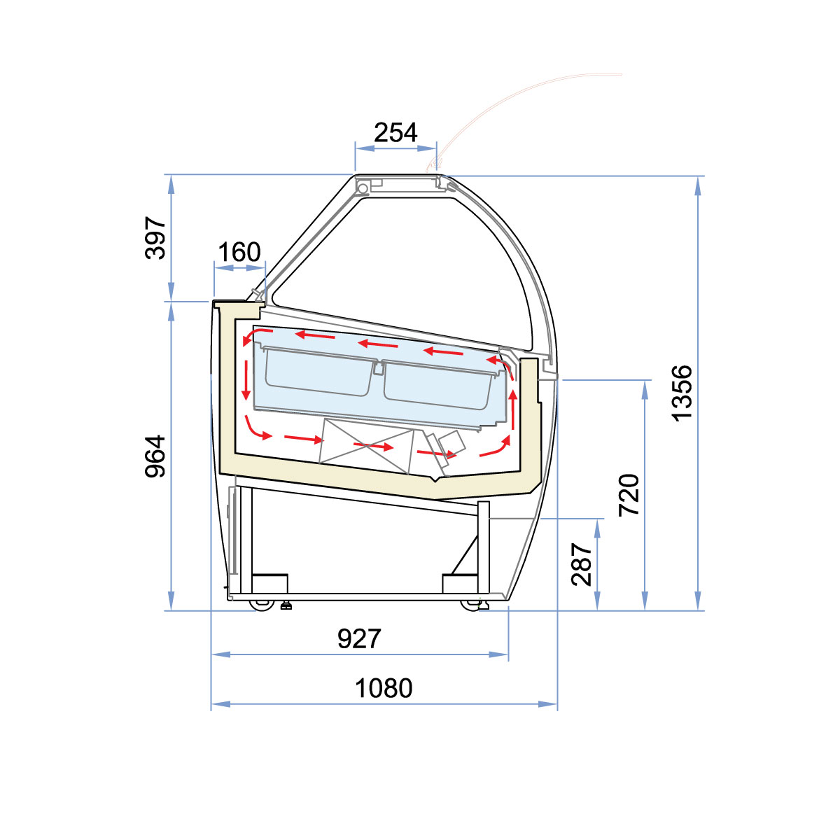 Βιτρίνα παγωτού (129,8*61,5*94,9(130,5)cm – 7 λεκανάκια)
