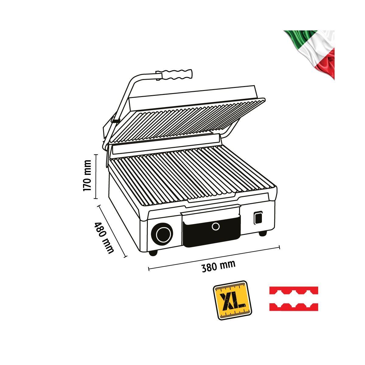 Επαγγελματική τοστιέρα μαντεμένια , με δομή από ανοξείδωτο χάλυβα και αντικολλητικές πλάκες από χυτοσίδηρο, κατασκευασμένη με ειδική επιφανειακή κεραμική επίστρωση που κάνει τις πλάκες ιδιαίτερα ανθεκτικές στα οξέα, το αλάτι και τη διάβρωση, ενώ επιτρέπει τον εύκολο και γρήγορο καθαρισμό.