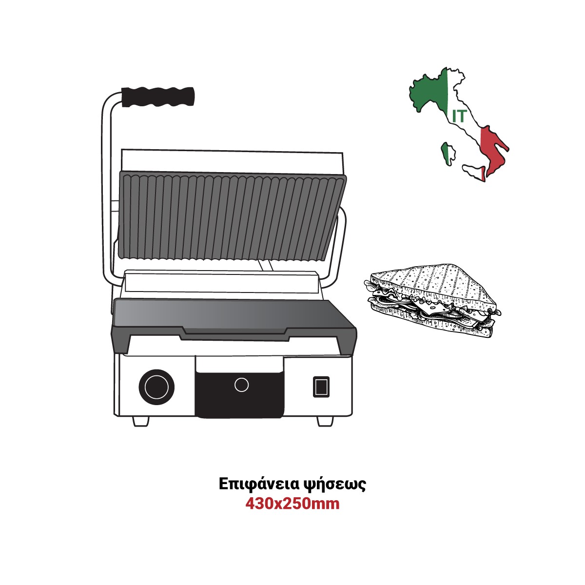 | Επιφάνεια ψήσεως | 430x250mm |