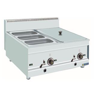 Ηλεκτρικά μπαίν μαρί με μονό και διπλό κάδο αντίστοιχα όπως και οι φριτέζες. Παραδίδονται με τρία λεκανάκια του ενός τρίτου (1/3) σε κάθε κάδο και ένα ενιαίο καπάκι, υπάρχει όμως η δυνατότητα να τοποθετηθούν από το χρήστη λεκανάκια οποιασδήποτε από τις τυποποιημένες διαστάσεις κυκλοφορούν στην αγορά ώστε να προσαρμόζεται στις ανάγκες του. Παρέχει απόλυτα ασφαλή λειτουργία και χαμηλή κατανάλωση ρεύματος. Για το άδειασμα του κάδου διαθέτει,βάνα ασφαλείας.