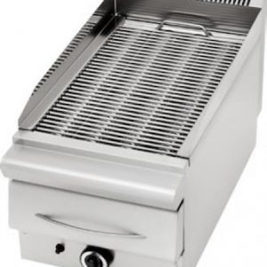 Ψησταριά αερίου νερού με νερό στο συρτάρι με δύο ΙΝΟΧ καυστήρες μια ΙΝΟΧ σχάρα και μία πλάκα, με πιλότο και θερμοκόπια ,δουλεύει σε όλα τα αέρια(υγραέριο και φυσικό αέριο).