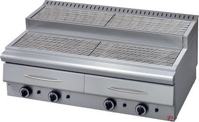 Ψησταριά αερίου νερού με τέσσερις καυστήρες, διακόπτες και ανοξείδωτες σχάρες.