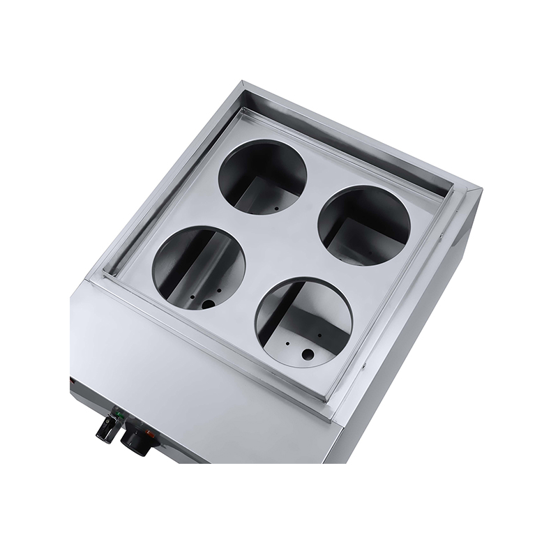 Επαγγελματικός βραστήρας VEP4, κατάλληλος για ζυμαρικά, με 4 θέσεις για στρογγυλά καλάθια. Ο βραστήρας διαθέτει ανοξείδωτες αντιστάσεις, δύο ανεξάρτητους θερμοστάτες, ισχύ 4Κw & βρυσάκι απορροής.