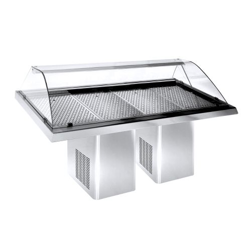 Σχεδιασμένη για να διατηρεί τον πάγο που υποστηρίζει την παρουσίαση του ψαριού, η βιτρίνα διαθέτει ενσωματωμένο ψυκτικό μηχάνημα που συμβάλλει στη διαρκή ζωή του πάγου, εξασφαλίζοντας ότι τα προϊόντα παραμένουν φρέσκα για μεγαλύτερο χρονικό διάστημα.
