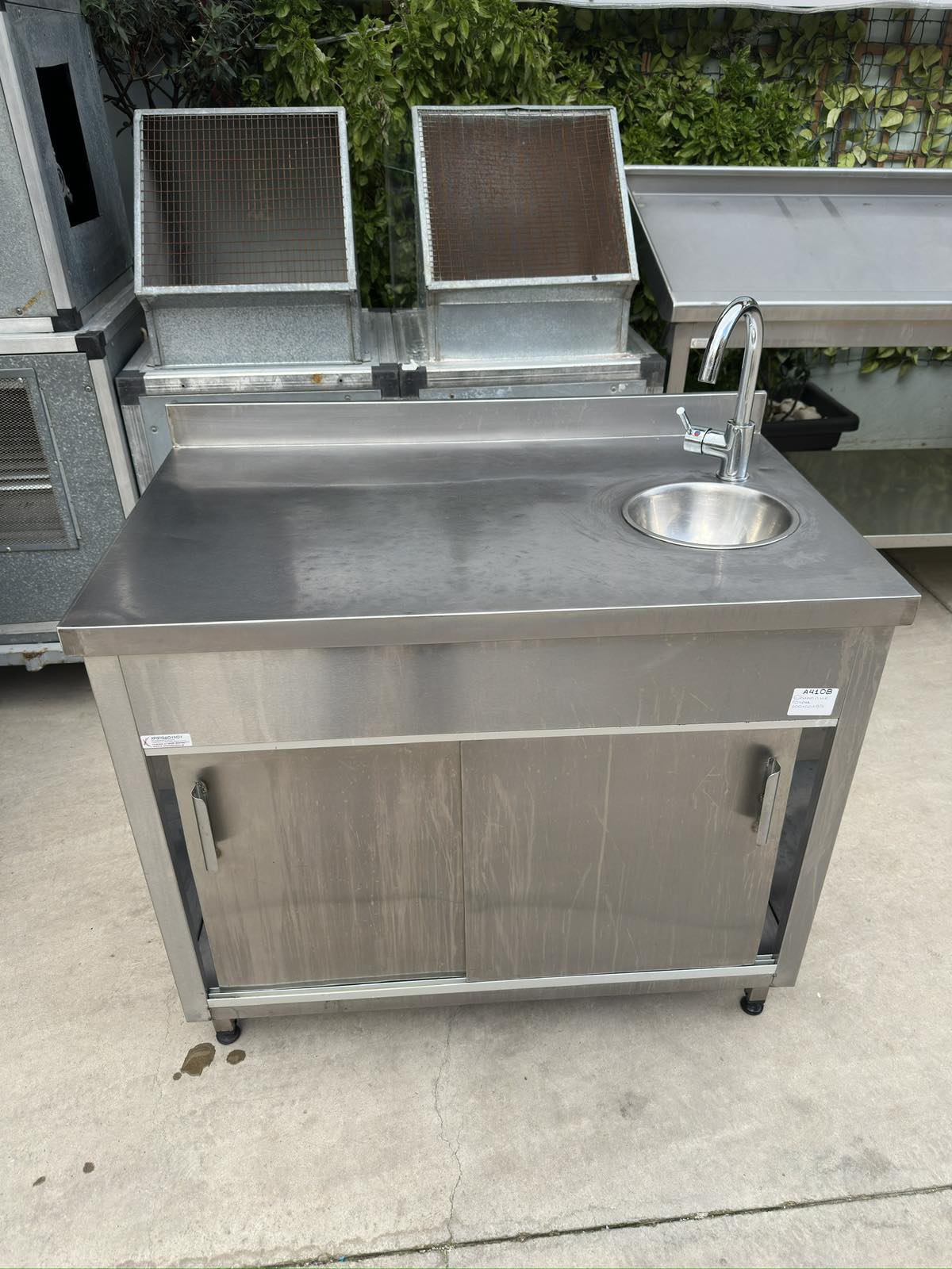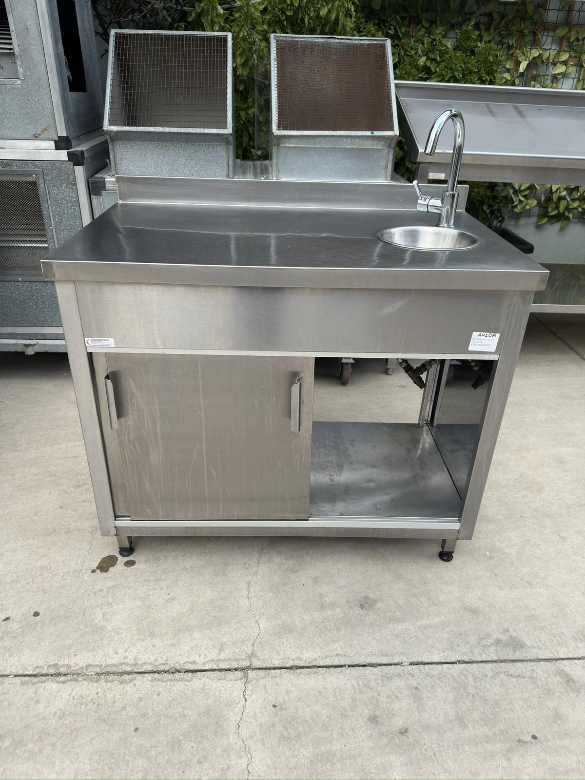 Μεταχειρισμένο ερμάριο με γούρνα στρογγυλή δεξιά Φ23 ,συρόμενες πόρτες & πανωσήκωμα.