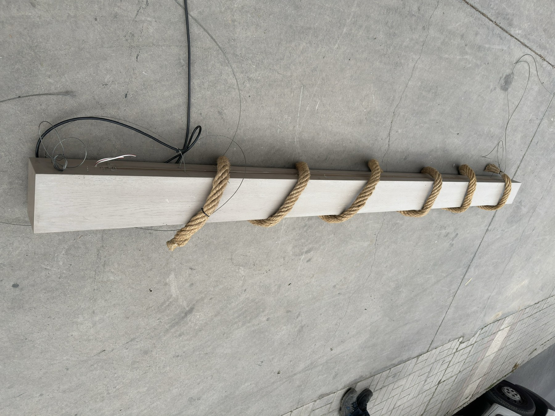 Μεταχειρισμένο φωτιστικό οροφή ξύλινο μπεζ με σχοινί.