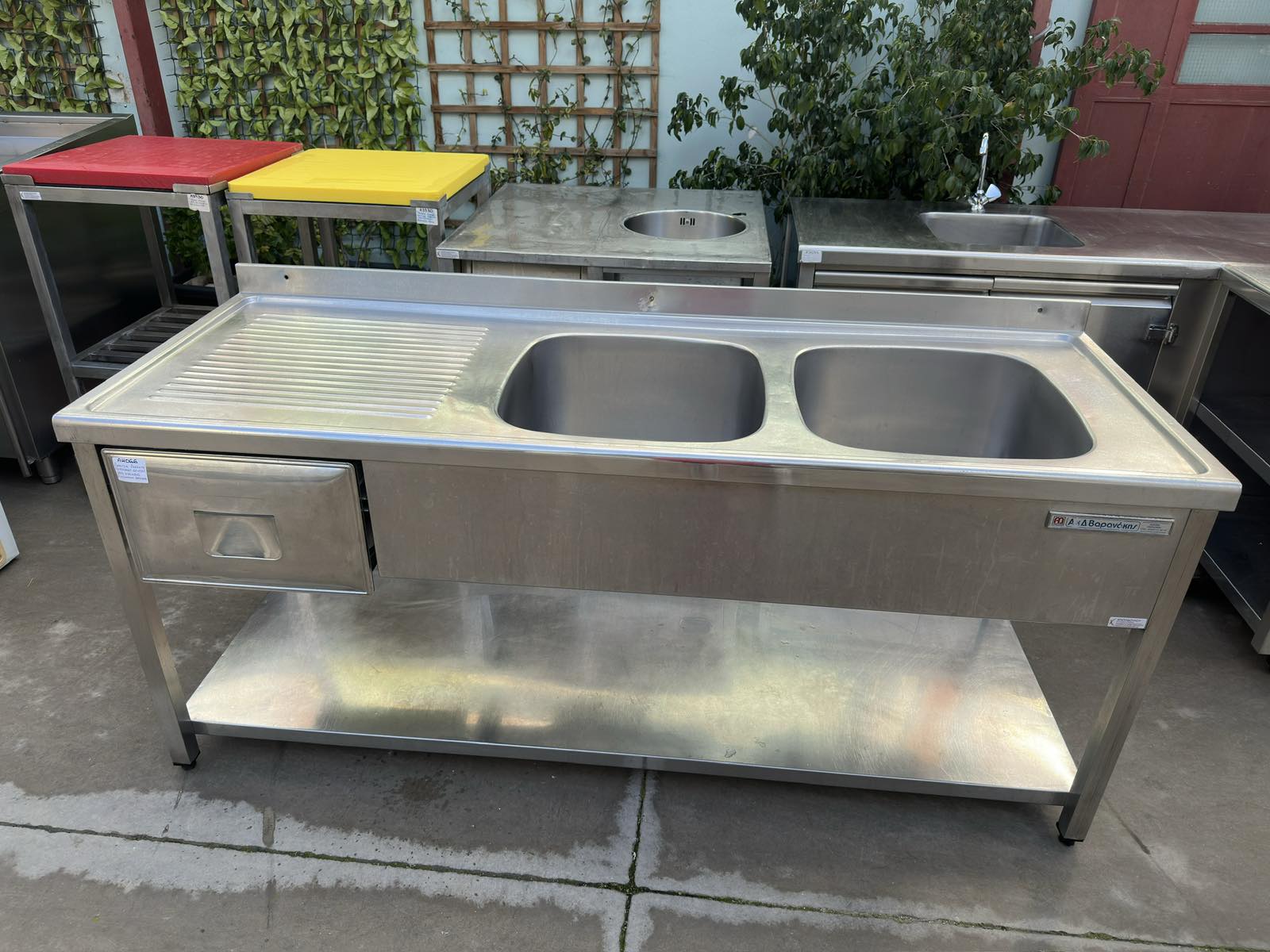Μεταχειρισμένη λάντζα ανοιχτή με 2 γούρνες δεξιά 50×50 & ένα συρτάρι αριστερά .