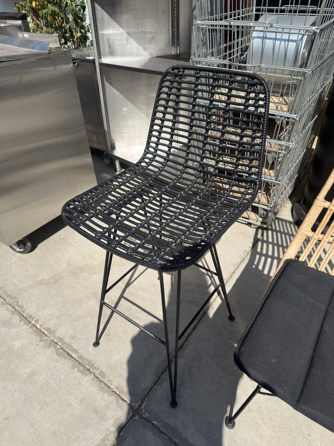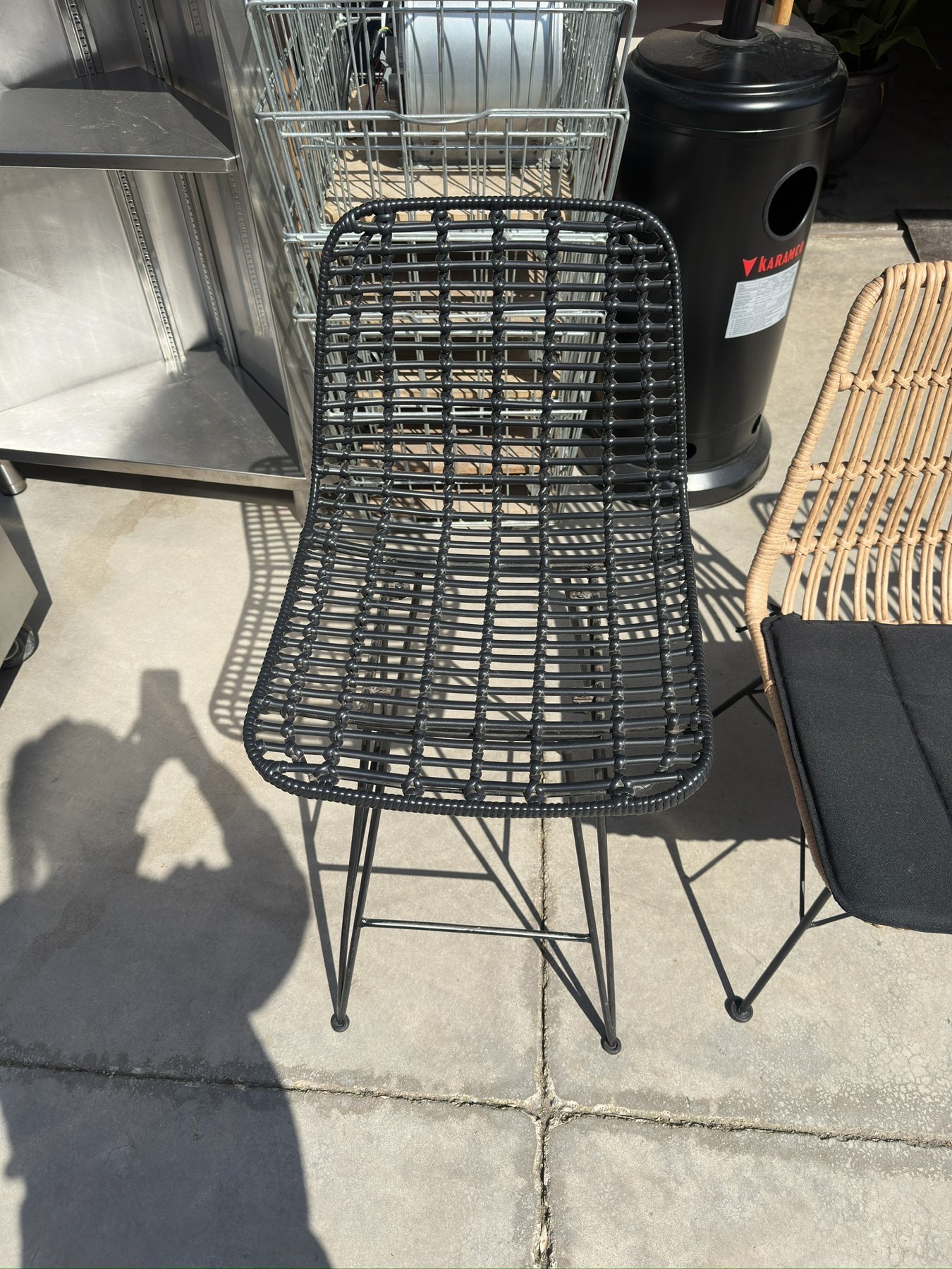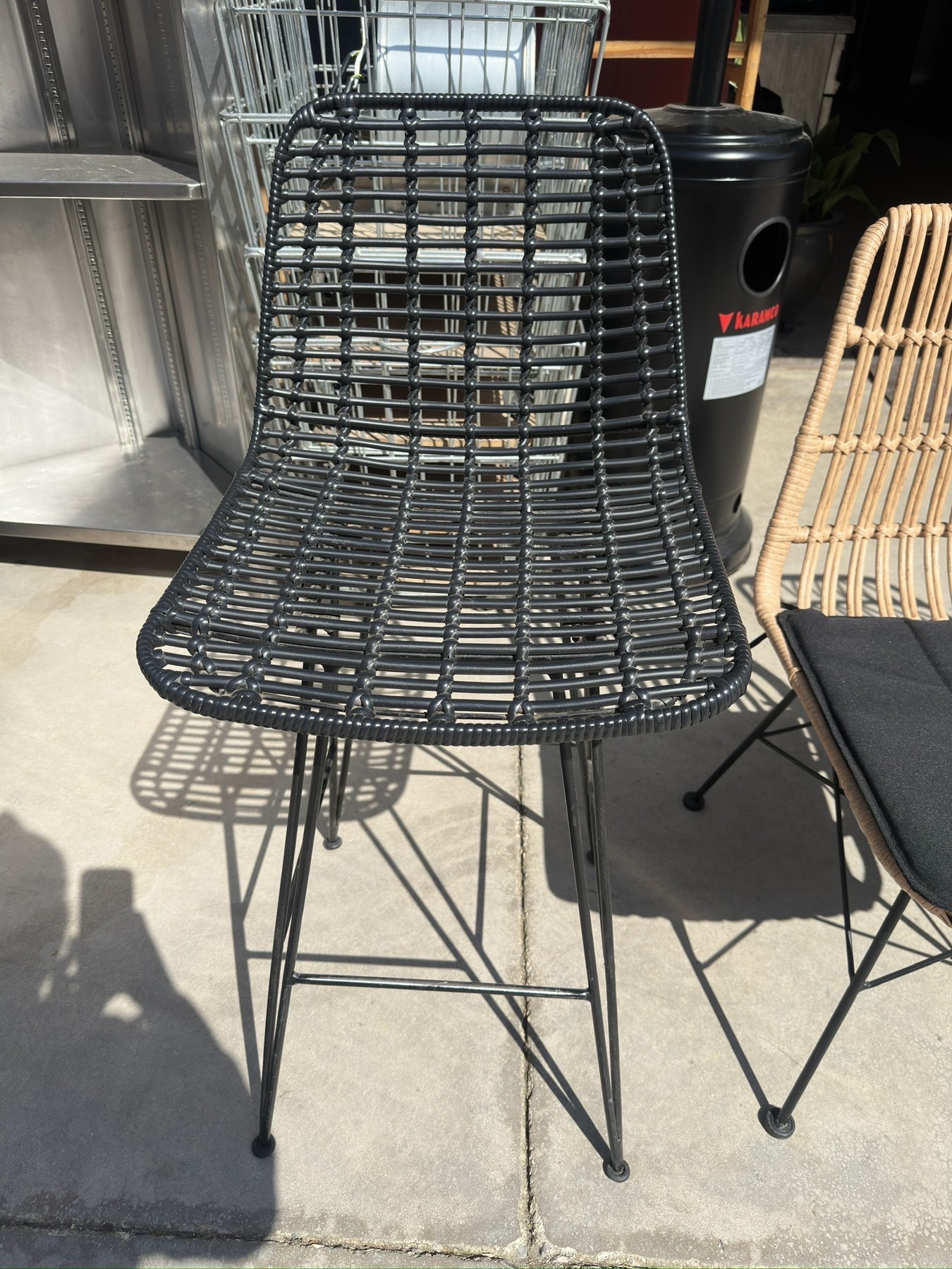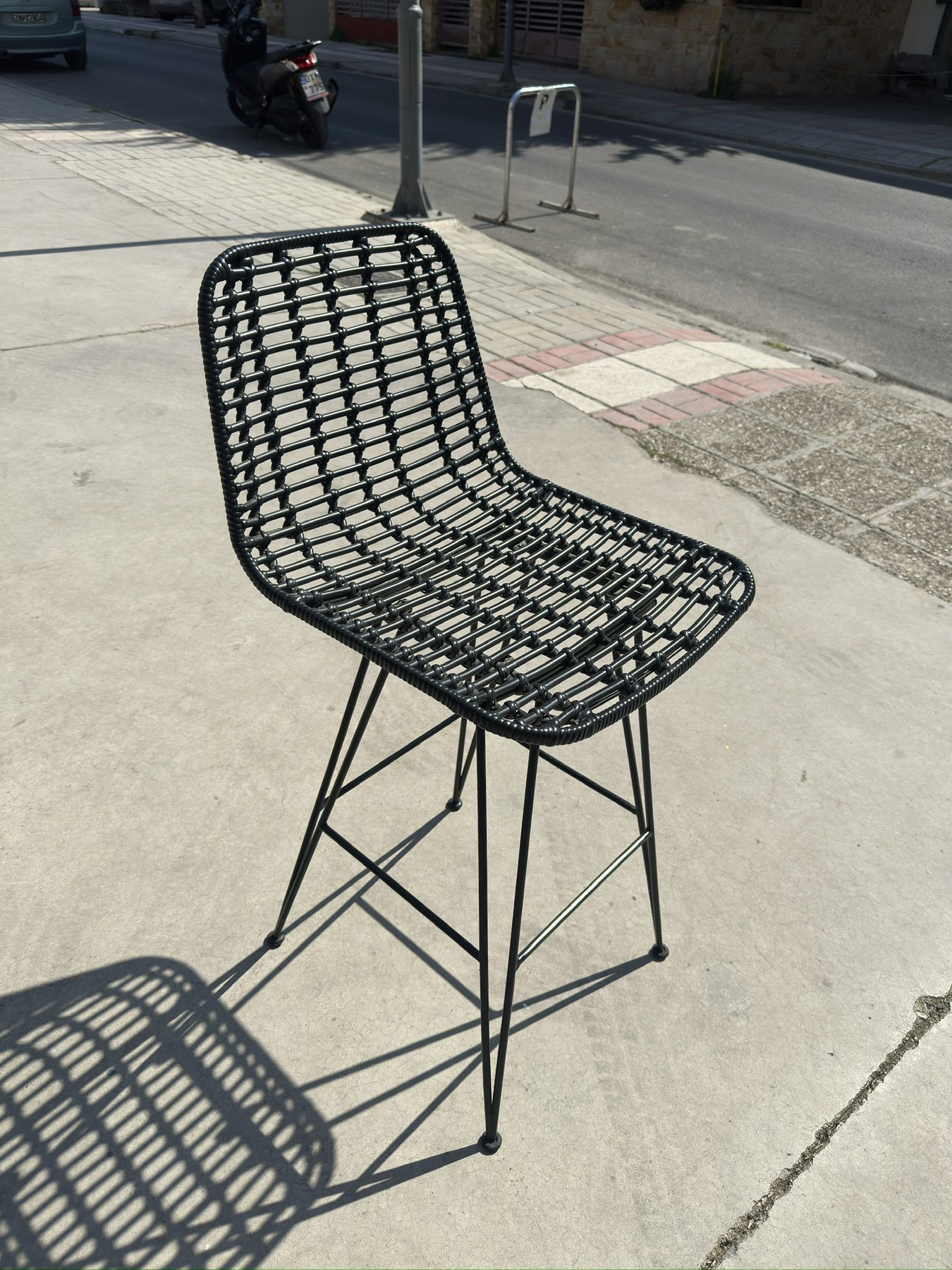 Μεταχειρισμένο σκαμπό ψηλό πλεκτό , εξωτερικού χώρου .