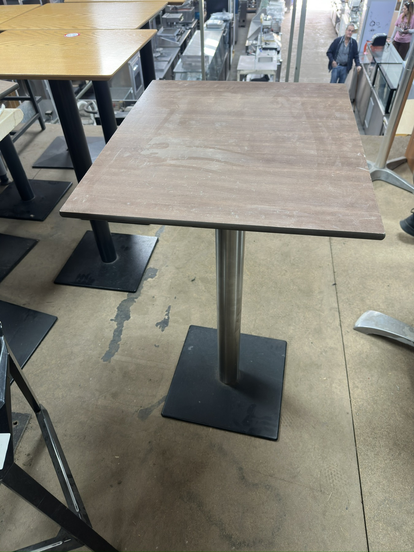 Μεταχειρισμένο σταντ με μονή βάση inox-μαύρο & καπάκι ξύλινο καφέ .