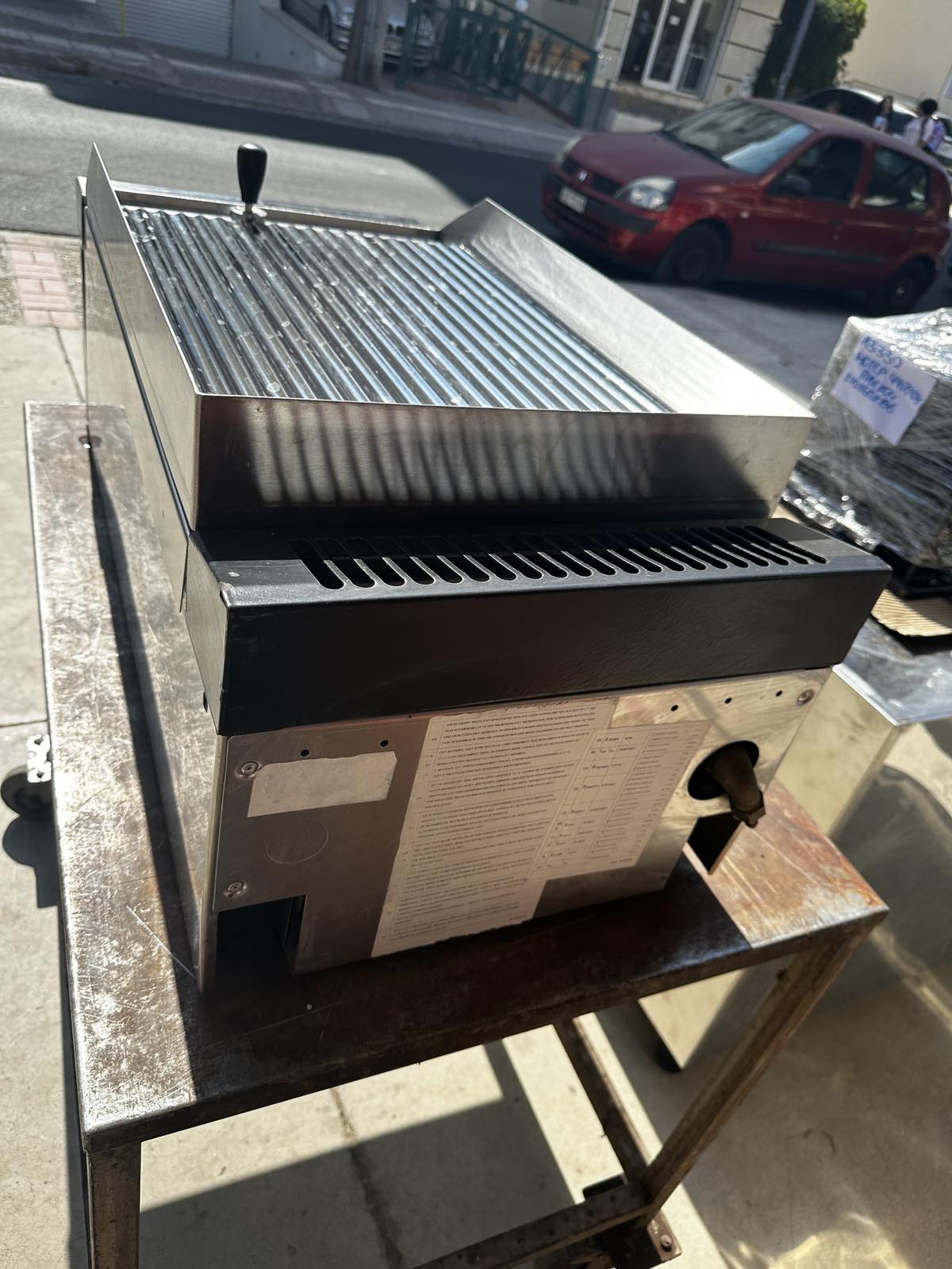 Μεταχειρισμένο πλατώ αερίου με ραβδωτή πλάκα χρωμίου