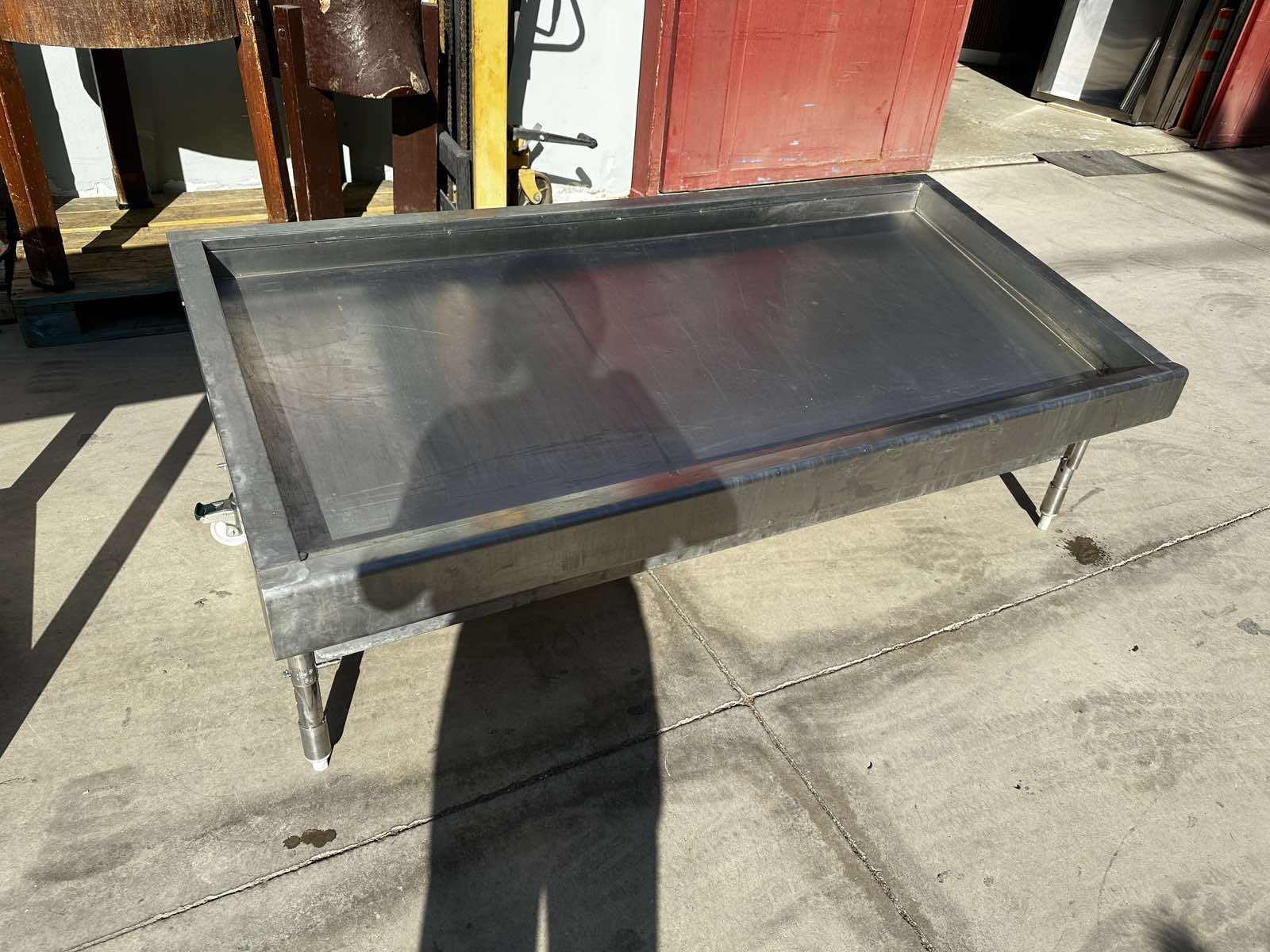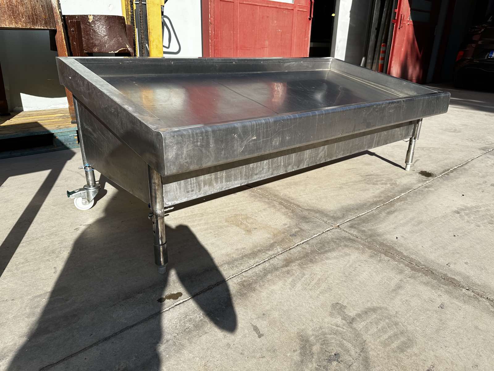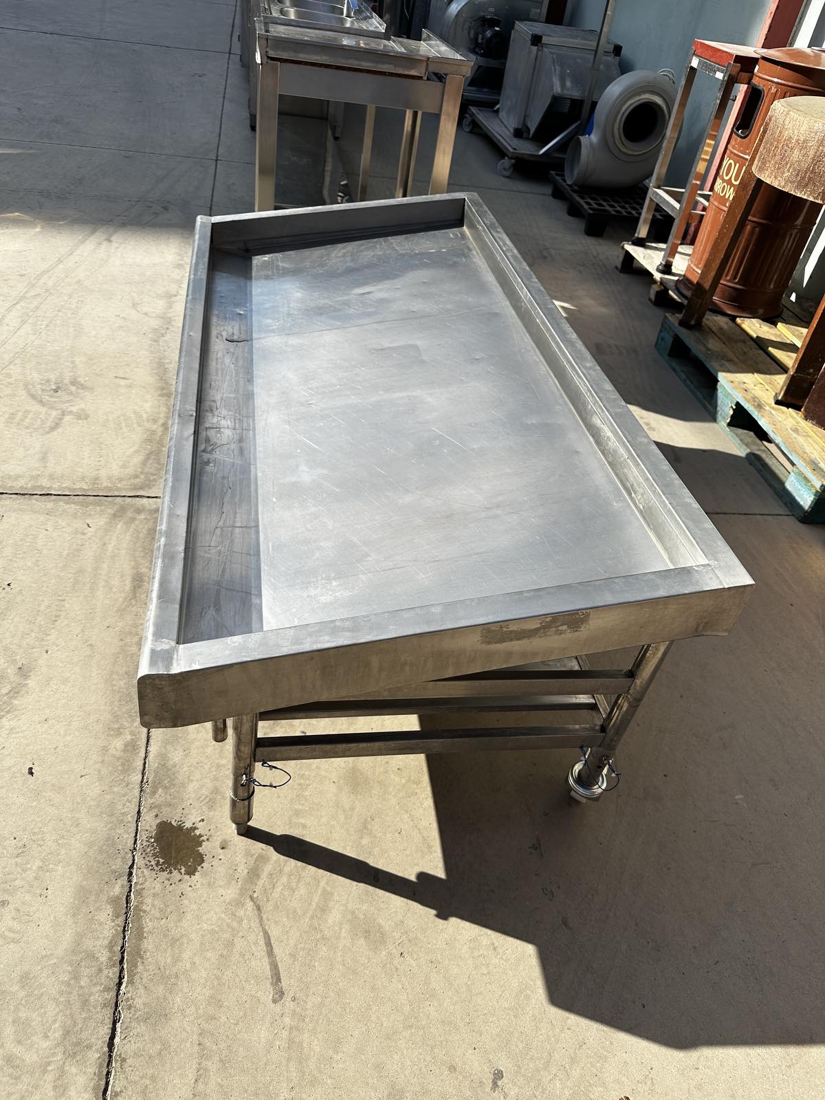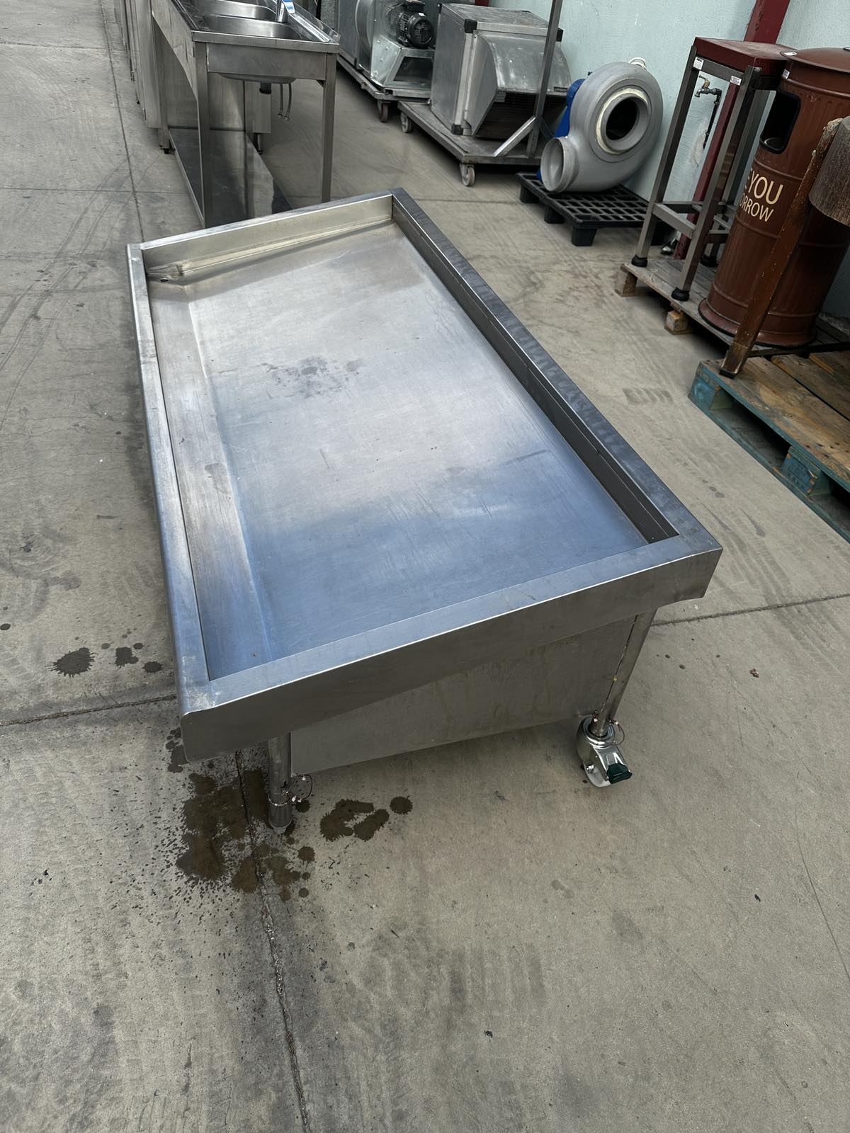 Μεταχειρισμένος πάγκος ιχθυοπωλείου χαμηλός ανοξείδωτος τροχήλατος.