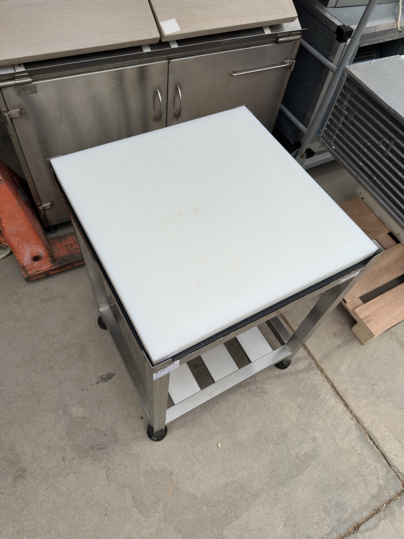 Μεταχειρισμένος πάγκος κοπής με ανοξείδωτη βάση με καινούριο τεφλον (χρώμα λευκό).