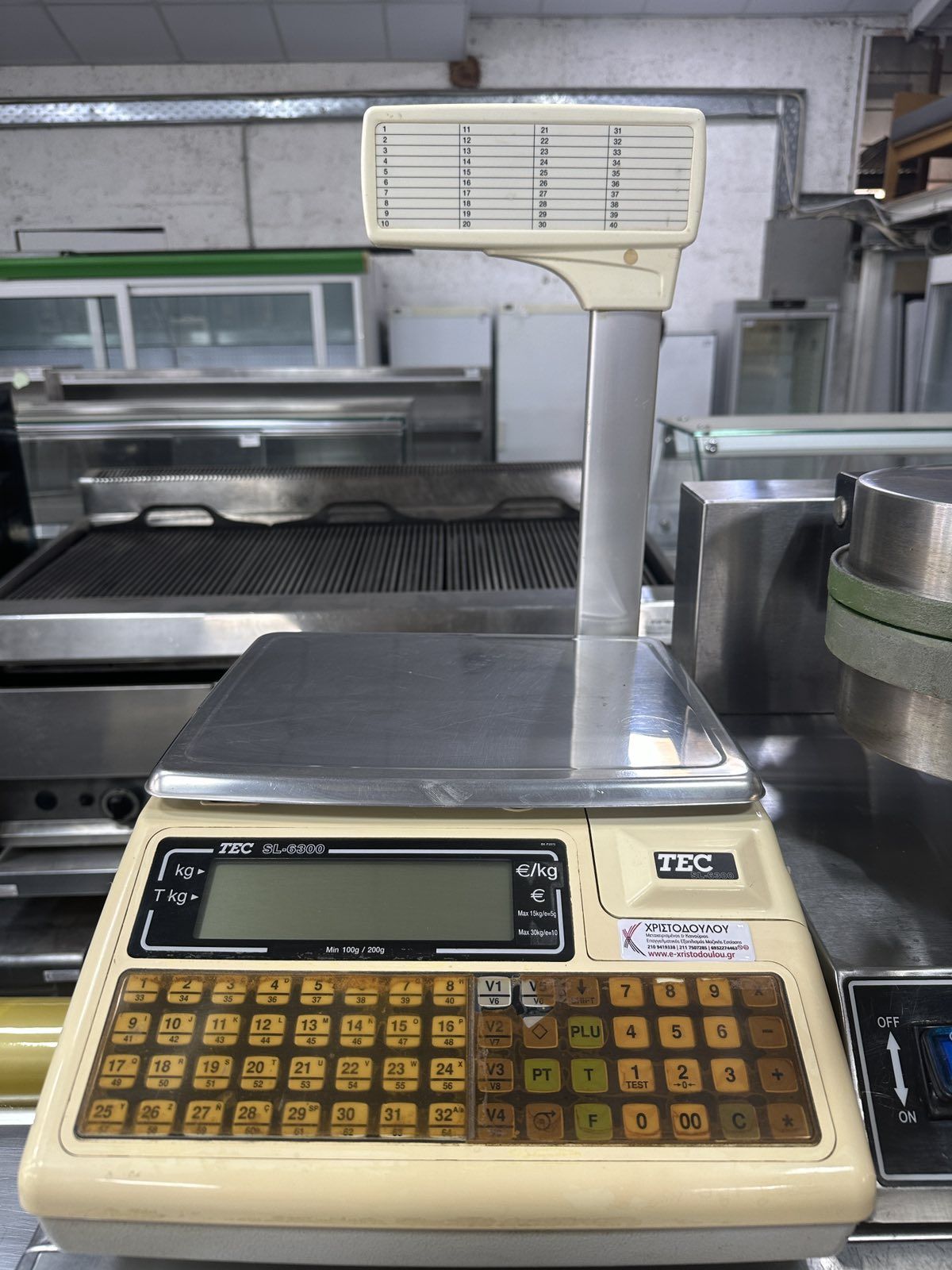 Αρχική σελίδαΚατάστημαΜεταχειρισμένος ΕξοπλισμόςΕξοπλισμός ανά επιχείρηση(Μ)Εξοπλισμός πρατηρίου άρτου(M) Ζυγαριά ετικέτας TEC SL-6300